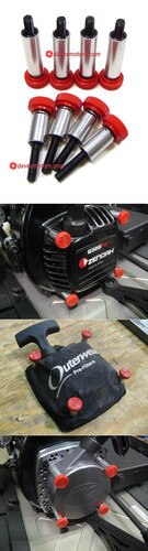 Named after their genius inventor, AKA PegLeg on the forums, these thumb screws are the perfect solution for those hard to get to pull start screws. Each screw consists of a knurled knob, lock washer, aluminum standoff and a 90 durometer o-ring press fit to lock the assembly together. Separate kits available for the standard CY / Zenoah and Turtle V2 pull starts. Note: These screws may be used externally with a pull start pre filter (Outerwares) if desired. This would require four holes to be poked in the filter material.