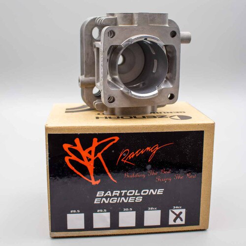 This cylinder includes a special base gasket for maximum performance. The gasket has a special thickness to allow for proper squish clearance. The inner dome of the cylinder has been cut and modified. This cylinder gasket requires a high temp silicone sealant be used to seal the cylinder to the crankcase. This cylinder kit is made to be used with the 30mm stroker crankshaft that can be found here.