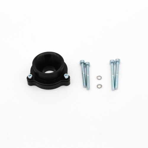 The first piece is a mounting plate that mounts to the carburetor like a traditional velocity stack, the plate also has a grove where an O-Ring fits into which provides a sure seal for the velocity stack. The second piece (velocity stack body) screws onto the velocity mounting plate. By doing this we are able to remove the bolt heads from the main velocity body allowing maximum undisturbed airflow for your engine therefore making performance!