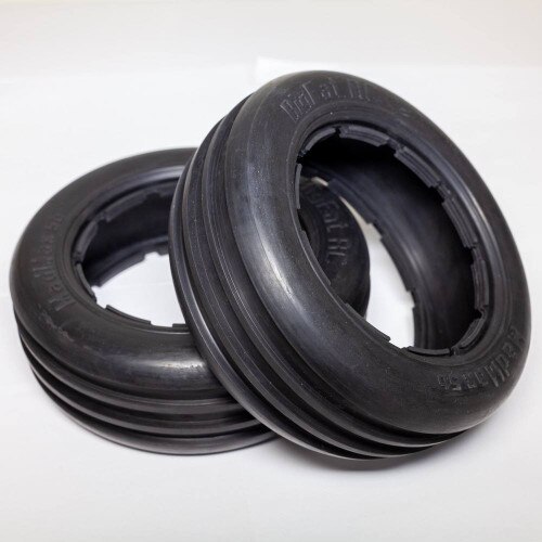 These tires feature a cross hatch pair of mini ribs. This makes it ideal for surfaces that are high bite and high traction found in racing circuits. This would also work on hard pack surfaces with loose dust. The tire is molded in a thick rubber to help maintain tire shape at high speeds and in corners. The tire compound is best suited for warm to hot temperatures for best performance.