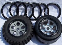Sand Buster-T Paddle rear tires are now available from HPI Racing. These tires are designed specifically for the Baja 5T truck. Sand Buster-T Paddle rears have 10 large paddles for maximum traction in sand and soft dirt. Sand Buster's are designed for the sand, but you can also run them in loose dirt and even in the mud! Sold in pairs, these tires are a direct replacement for the factory Baja 5T tires.